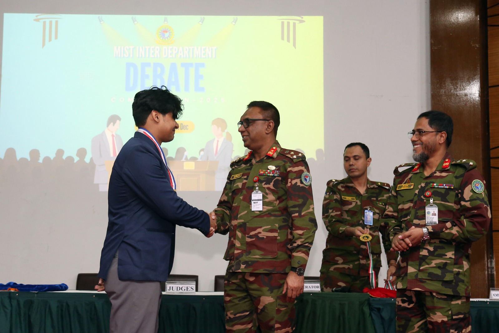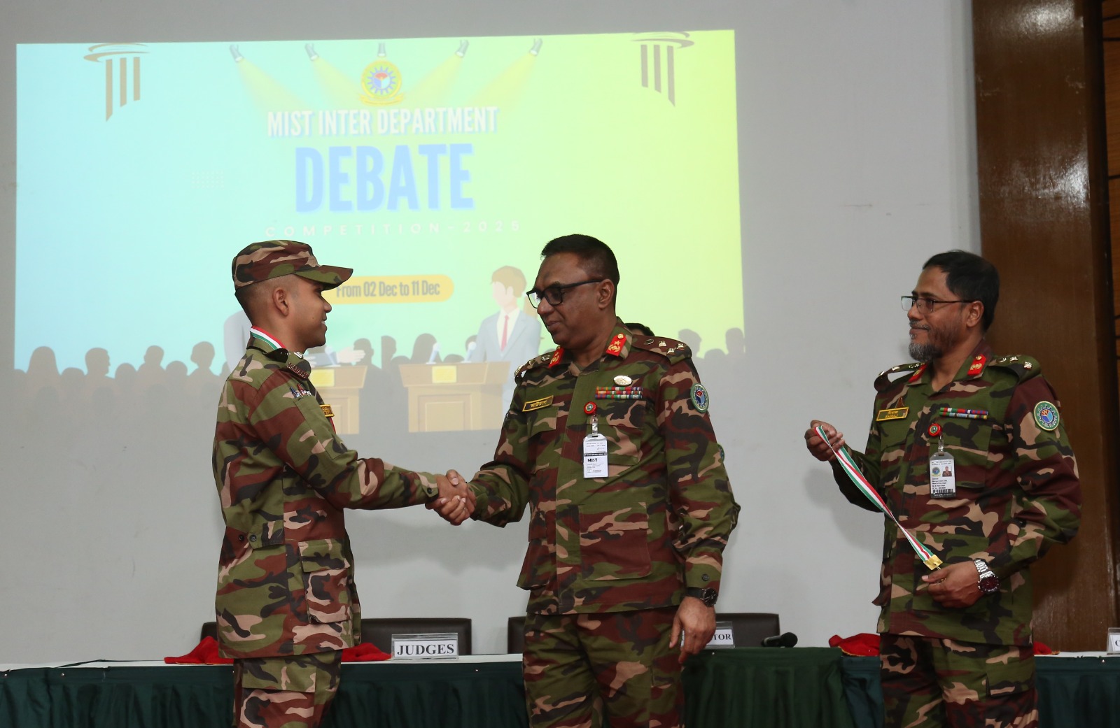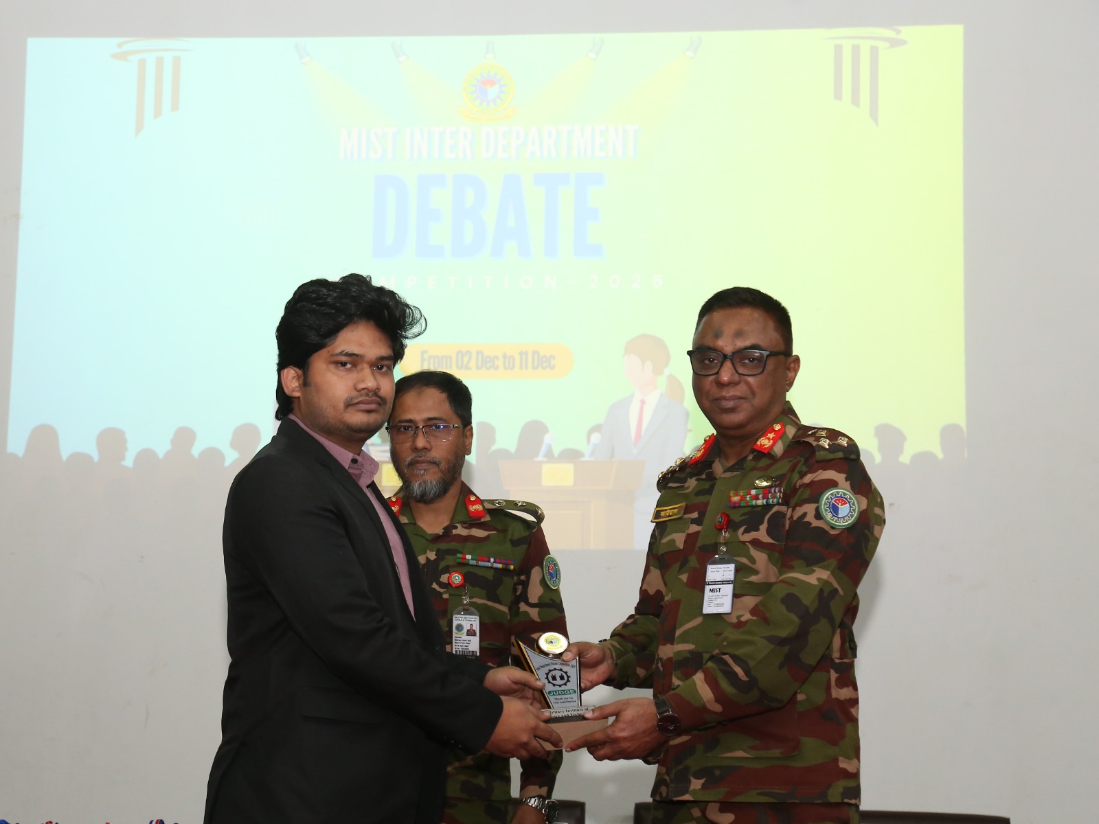 Starting on 2nd December 2025, MIST Inter-Department Debate Competition 2025 formally concluded on 11 December 2025. The Department of EECE emerged as the Champion, while the Department of IPE secured the position of Runner-up. Brigadier General Md. Awal Khan, Head of the Department of Mechanical Engineering, graced the closing ceremony as the Chief Guest. The competition was organized under the supervision of the Department of Science and Humanities, in collaboration with the MIST Debating Society.