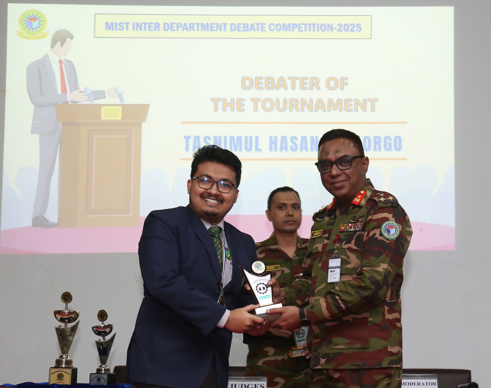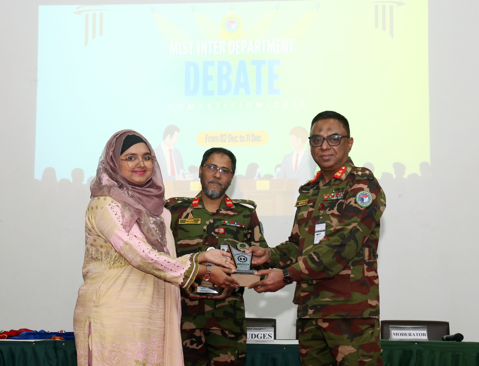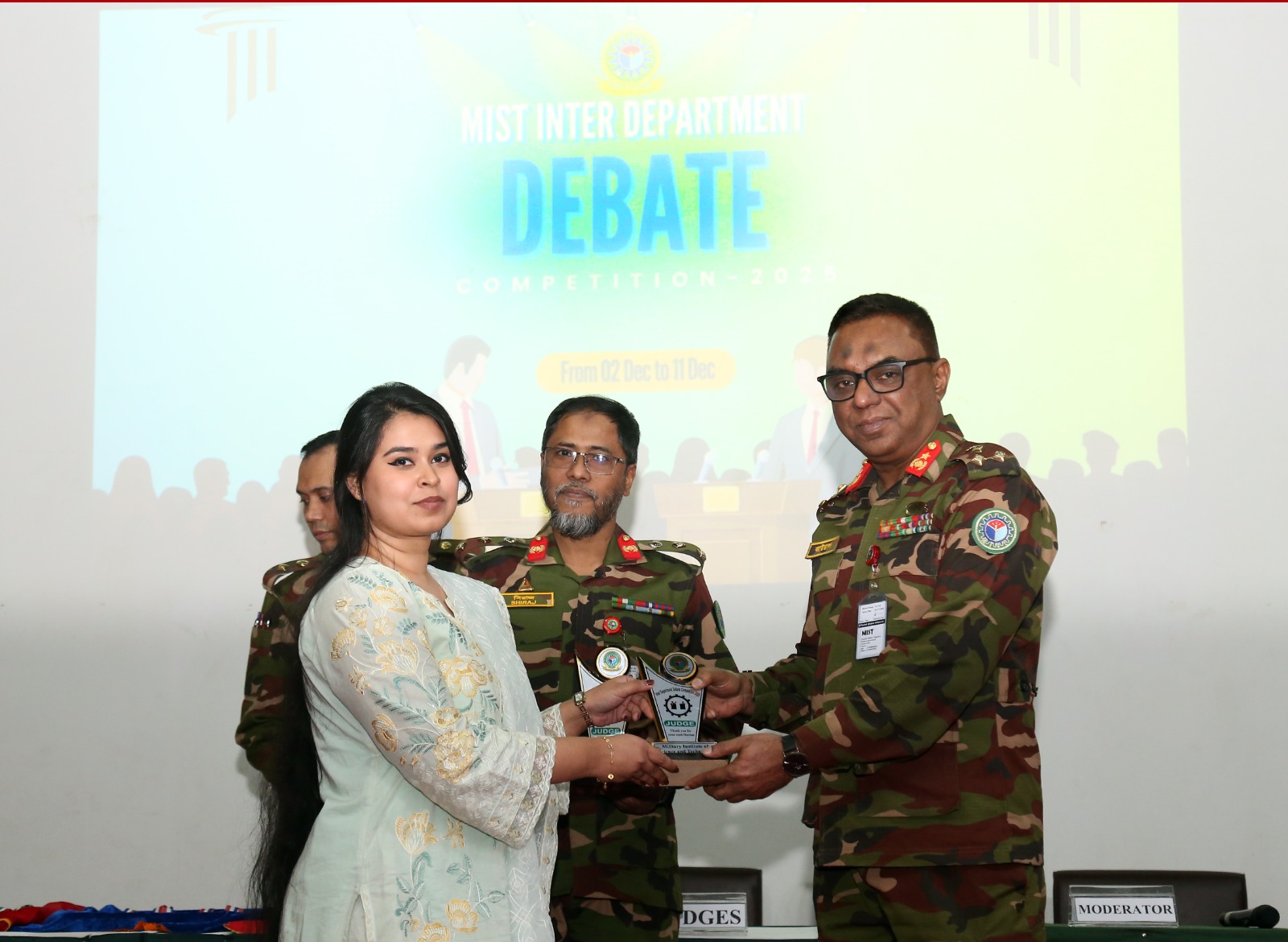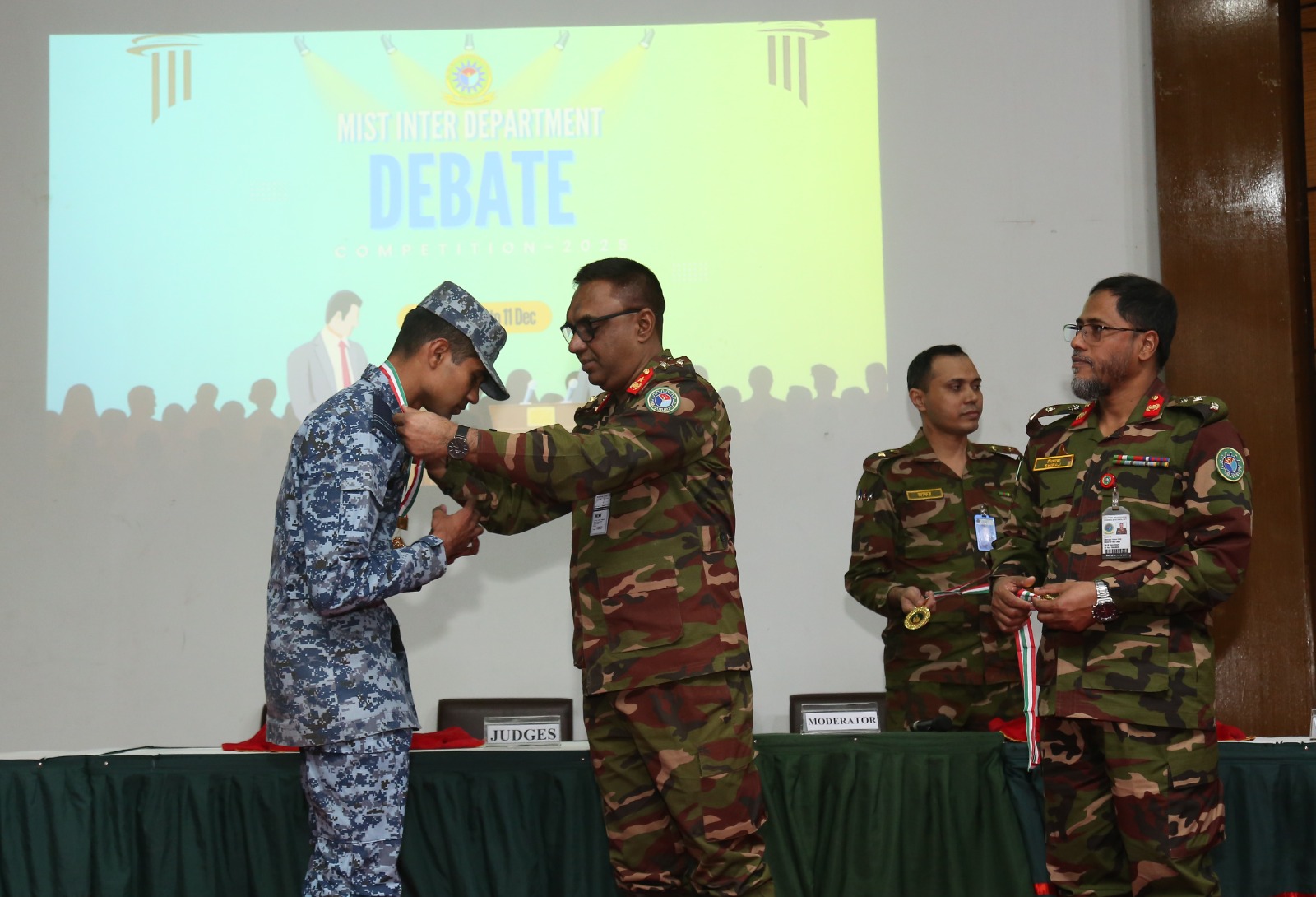 Starting on 2nd December 2025, MIST Inter-Department Debate Competition 2025 formally concluded on 11 December 2025. The Department of EECE emerged as the Champion, while the Department of IPE secured the position of Runner-up. Brigadier General Md. Awal Khan, Head of the Department of Mechanical Engineering, graced the closing ceremony as the Chief Guest. The competition was organized under the supervision of the Department of Science and Humanities, in collaboration with the MIST Debating Society.