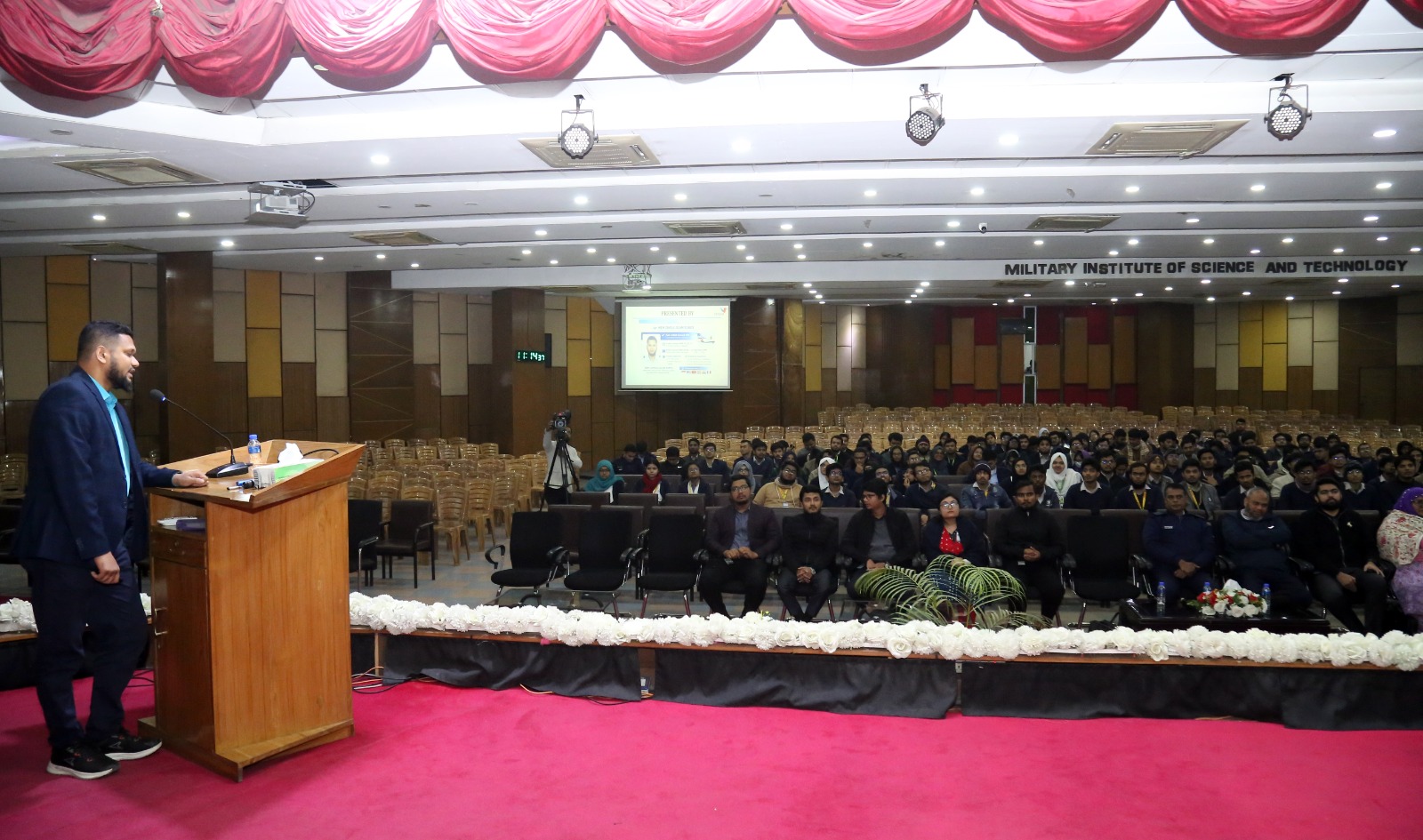 The keynote speaker, H.E.M. Zahidul Islam Eunus, Deputy Manager, NOVOAIR, and a proud alumnus of the AE-01 batch, MIST, shared his professional journey and extensive experience as a CAAB and EASA Part-66 Licensed Aircraft Maintenance Engineer and Type Rated Engineer of ATR 72-212A. He clearly explained the complete pathway to obtaining an AME license, covering academic preparation, practical training, licensing, type rating, and on-job training.